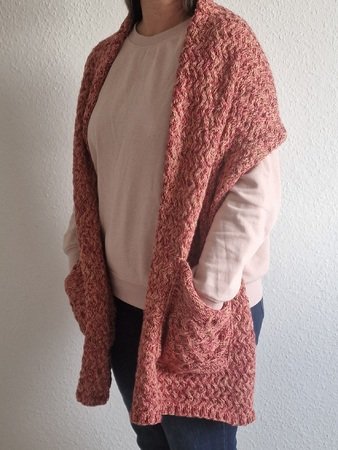 Besonders das Muster der Taschen, erfordern einiges an Können und somit ist der Schal nicht für Anfänger geeignet. Du musst neben rechten und linken Maschen auch Zöpfe stricken können und mit 2 Hilfsnadeln klarkommen.