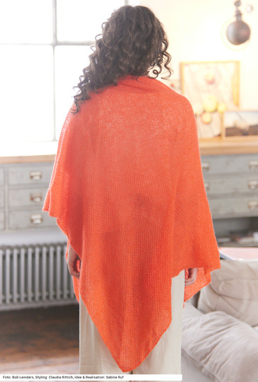Das weiche Dreieckstuch aus einem leichten Alpaka- und Seidengarn liegt wunderbar zart auf der Haut. Doch ein Softie ist das Modell deswegen noch lange nicht! Wir haben einen kraftvollen Farbton für dieses Modell mit großem Perlmuster gewählt, der das Tuch intensiv strahlen lässt. Die Ränder sind mit doppelten Randmasche gearbeitet – das ergibt eine schöne Kante. Eine Anleitung gibt es für ein tTuch in der Größe 214 x 160 cm.