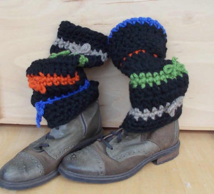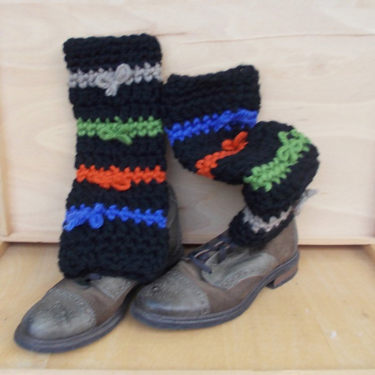 Meine Stulpen sind 40 cm lang und haben einen Umfang von ca. 29 cm. Die Stulpen können über den Stiefeln, in den Stiefelschaft gesteckt oder umgeschlagen getragen werden. Gleichfalls könnte Ihr nach meiner Anleitung auch overknee-Stulpen häkeln, wie Ihr wollt und farblich je nach Eurer Fantasie. Einzig den Beinumfang solltet Ihr beachten, mehr dazu in der Anleitung (2 pdf-Dateien, bitte beide herunterladen, mit Hinweisen zu Zubehör, Material und Tipps, die Anleitung enthält 47 Arbeitsbilder auf 5 Seiten, für Anfänger super geeignet).