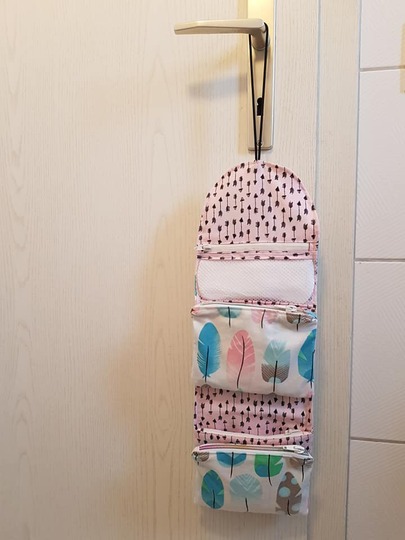 Praktisch ist, dass du das Täschchen mit dem Gummiband an der Türklinke aufhängen kannst.