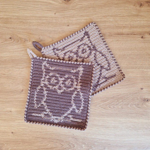 Diese Topflappen sind der Klassiker unter den gehäkelten Topflappen. Sie schützen die Hände nicht nur vor z.B. zu heißen Topfgriffen, sondern sie verschönern auch jede Küche. Gleichzeitig können sie auch als Untersetzer verwendet werden.