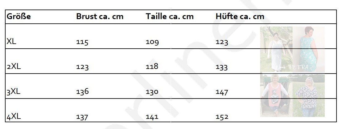 Maße: Brustumfang: 115 - 135 cm | Taillenumfang: 109 - 141 cm | Hüftumfang: 123 - 152 cm (Tabelle bei den Fotos)