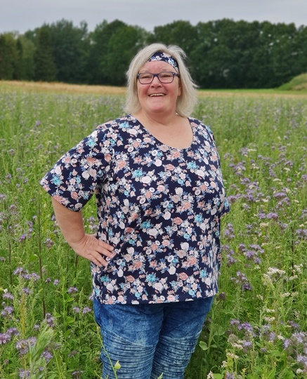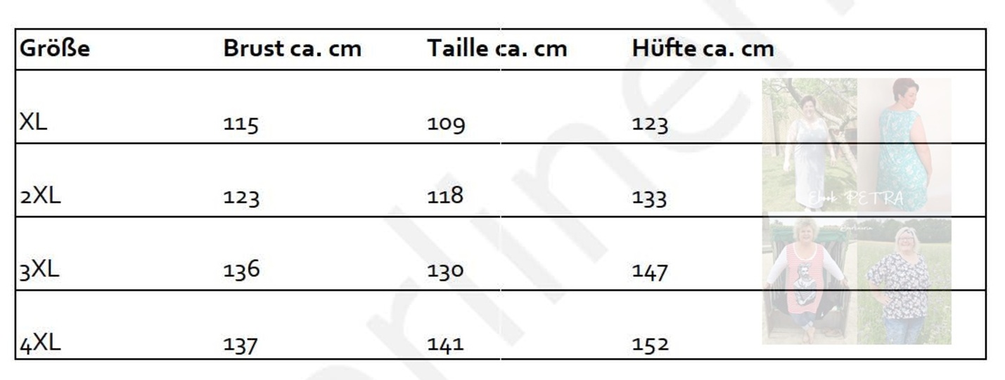 Mit dieser Anleitung und dem Schnittmuster kannst du dir ein Top oder T-Shirt nähen in den Gr. XL - 4XL. Genäht werden können die Kleidungsstücke aus allen dehnbaren Stoffen, z. B. Baumwolljersey, Viskosejersey oder leichtem Frenchterry und Sommersweat.