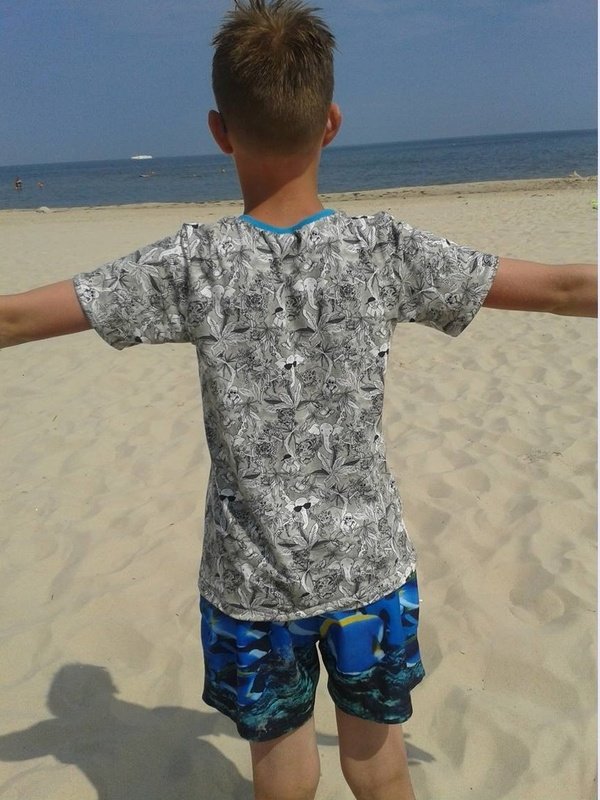 Mit dieser Anleitung & Schnittmuster näht ihr euren Jungs/Kids ein Basic Kurzarm-T-Shirt in den Gr. 152 - 176 mit Rundhalsausschnitt. Für weitere Größen schaut euch gern die Version für Erwachsene ab Gr. L im Shop an. Genäht werden kann das Shirt aus allen dehnbaren Stoffen, z.B. Jersey oder leichter Sommersweat. Auch Anfänger kommen mit der Anleitung sehr gut zurecht, die einzelnen Nähschritte sind gut beschrieben und bebildert. Außerdem gibt es ein Tutorial, wie ihr die Schulterbreite eventuell anpasst.