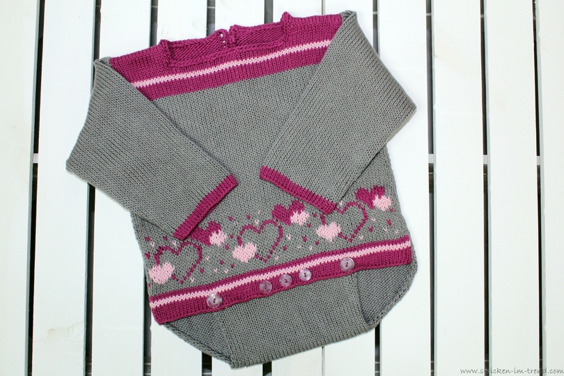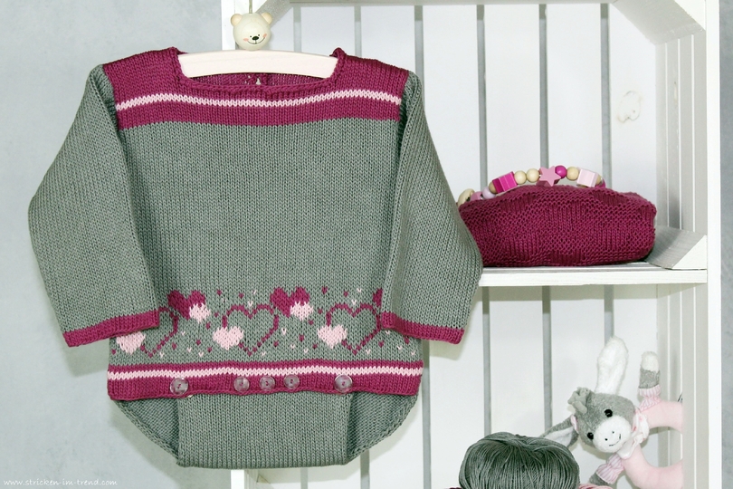 Ihr habt die Wahl - entweder wird das Muster bereits beim Stricken eingearbeitet, oder Ihr stickt es dann einfach auf den fertigen Babybody auf - ganz nach Belieben!