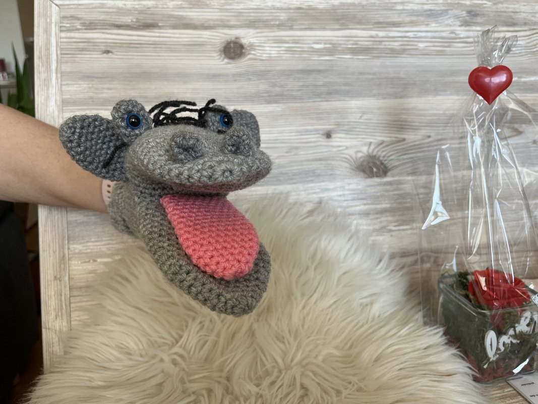 Diese Handpuppe ist nicht nur für kleine Kinder ausgelegt, sondern auch für Erwachsenenhände, immerhin möchte man ja gerne mit dem Kind zusammen spielen. Die Puppe ist fertig 19.5 cm gross und lässt genügend Platz