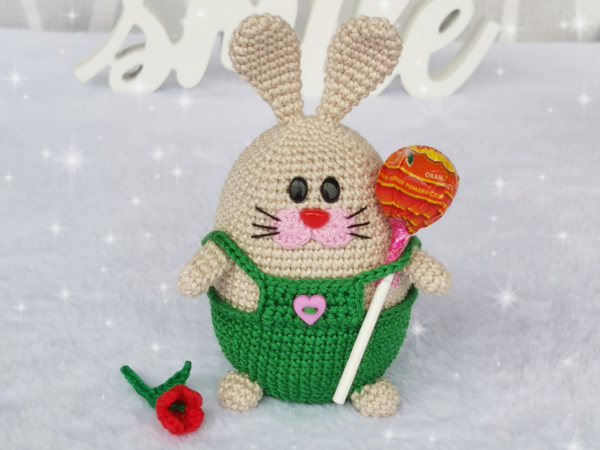 Dieses lustige Häschen hat die Form eines Eies, das einen Neuanfang symbolisiert. Es eignet sich hervorragend als Dekoration für den Ostertisch. Die Häkelanleitung bereichert jede Osterdekoration mit Gemütlichkeit und Freude. Viel Spaß beim Häkeln!