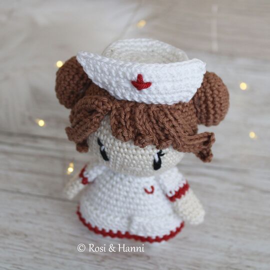 "Krankenschwester Lena" wird bei angegebener Wolle und Häkelnadel ca. 12,5 cm groß.