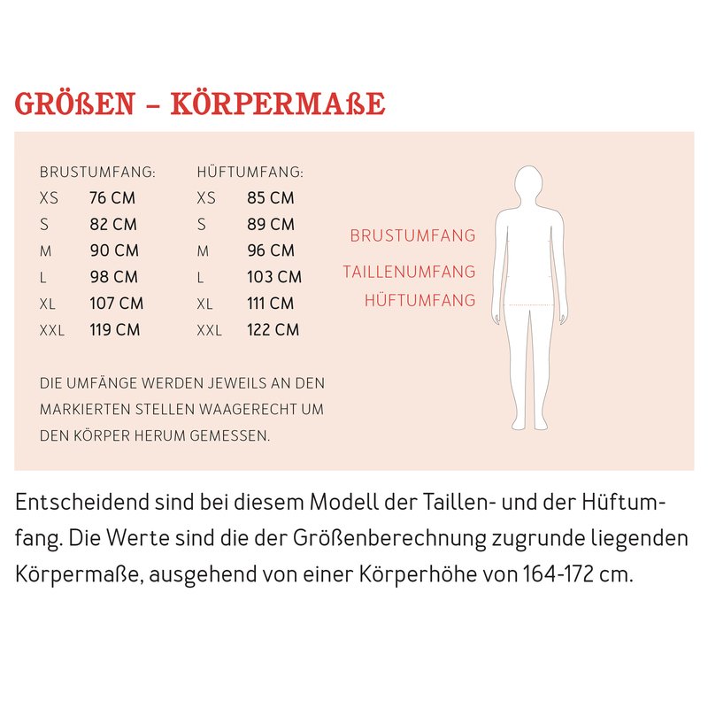 6 Doppelgrößen XS (32) bis XXL (50/52)