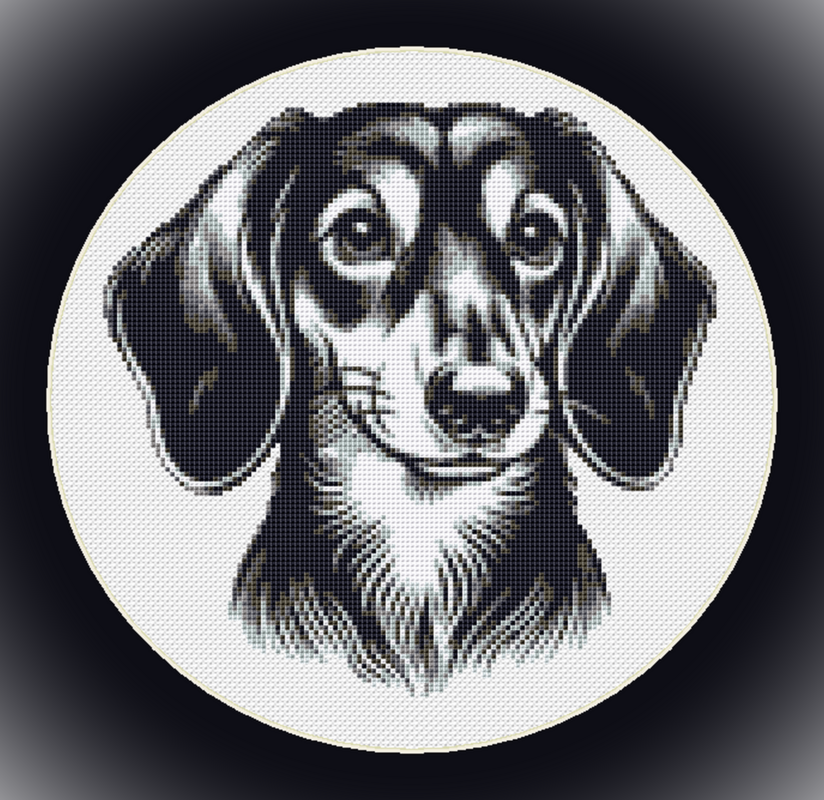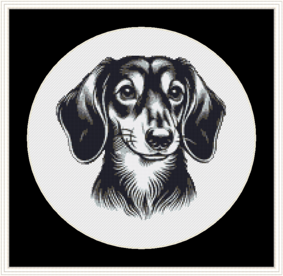 Kreuzstichvorlage Tiermotiv Porträt Dackel,