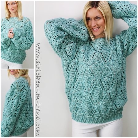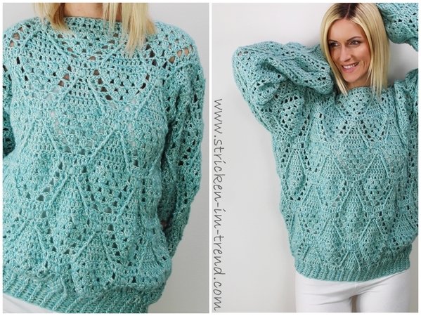 > sicher kann dieser Häkelpulli auch gerne in anderer Wolle gearbeitet werden