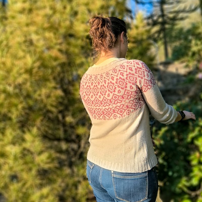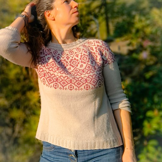 Sommerliche Motive und leichte Pullover locken uns im Frühjahr wenn die ersten Frühblüher erscheinen. Diesen Rundpassenpullover passt wunderbar in die wärmere Jahreszeit.