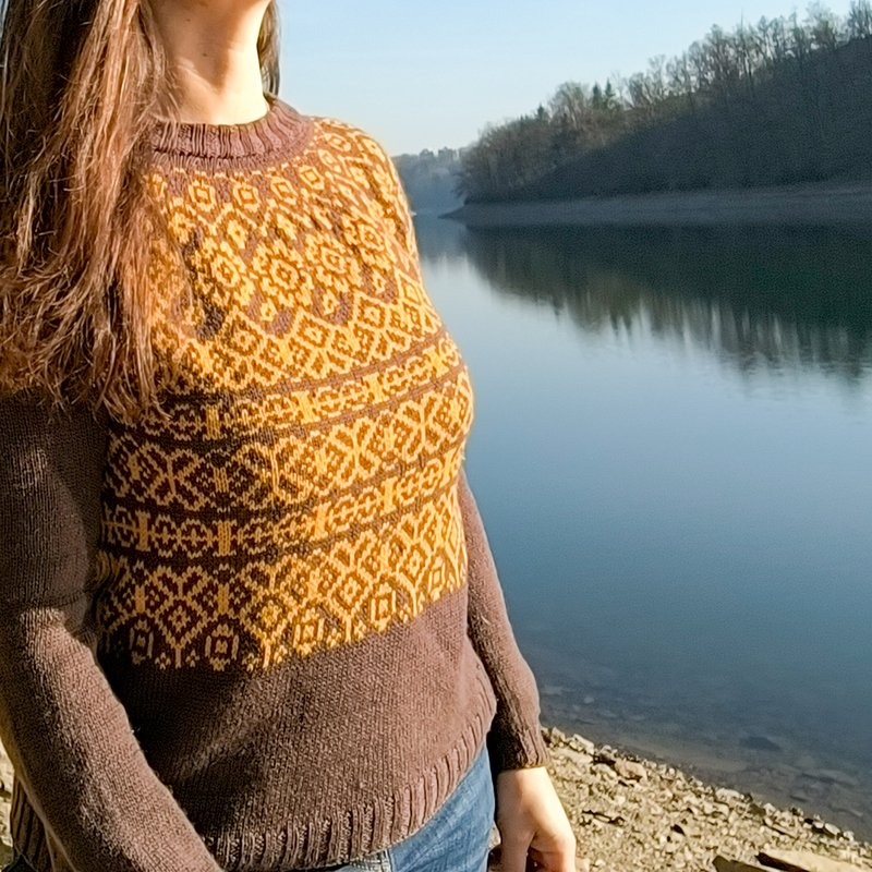Das Projekt ist auch für Anfänger in Colourwork, da die Spannfäden nur wenige Zentimeter betragen.