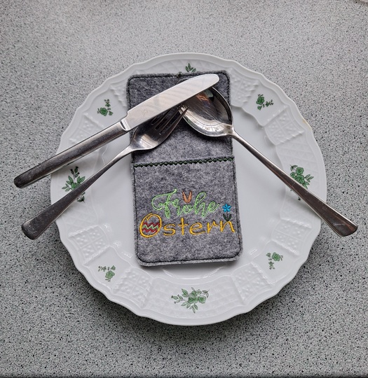 ITH Stickdatei für eine Bestecktasche zum Frühling und Ostern.