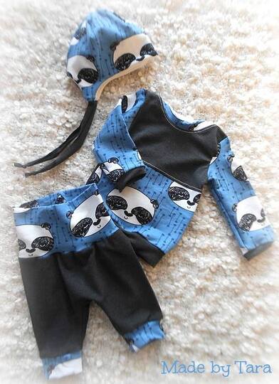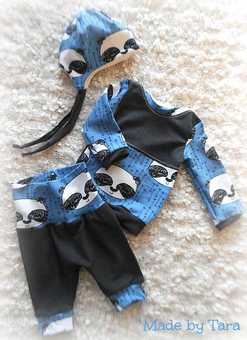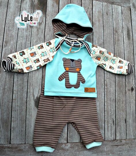 Dieses Set bestehend aus Shirt/Pullover, Hose und Mütze lässt die Herzen der Mama´s höher schlagen.