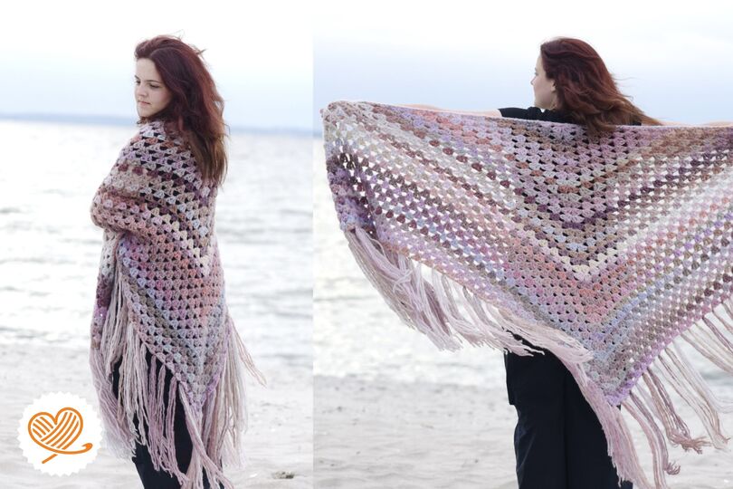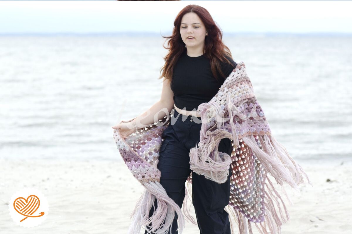 Die Stola AVA im Granny Square Muster ist eines der beliebtesten Anleitungen in meinem Shop. Sie lässt sich ganz einfach und schnell häkeln und du kannst mit jedem Material deiner Wahl arbeiten. Ich verwende gern Wolle mit Farbverlauf, so wird das Tuch, ganz ohne Farbwechsel, farbig und du kannst dich auf das Muster und das Häkeln konzentrieren. Das perfekte Muster für entspanntes Häkeln beim Fernsehen.