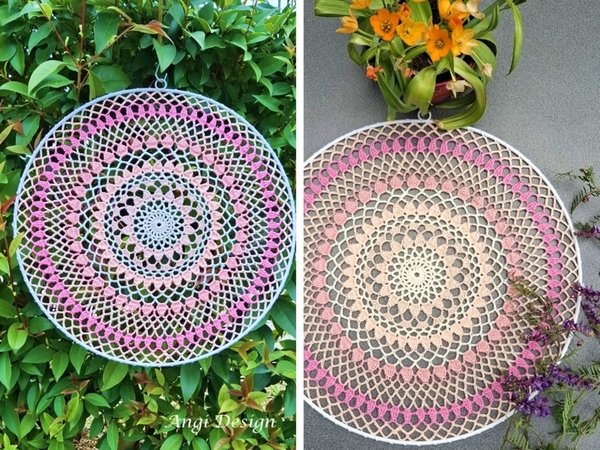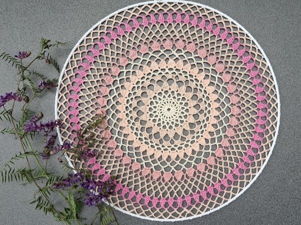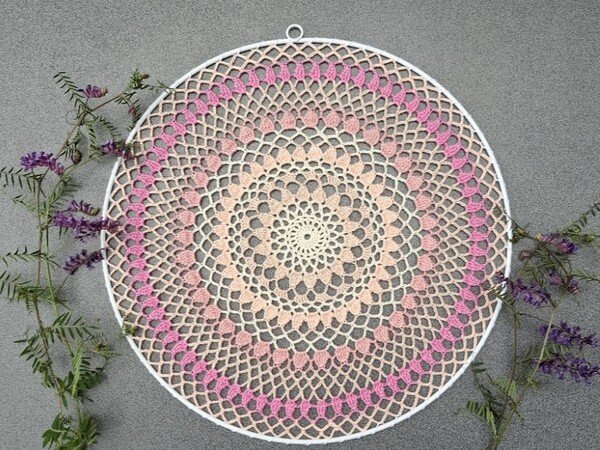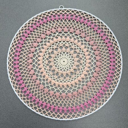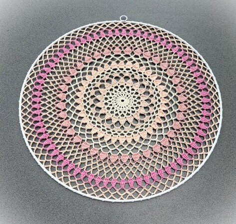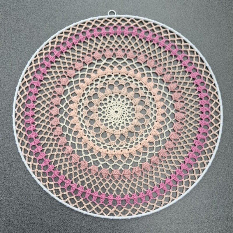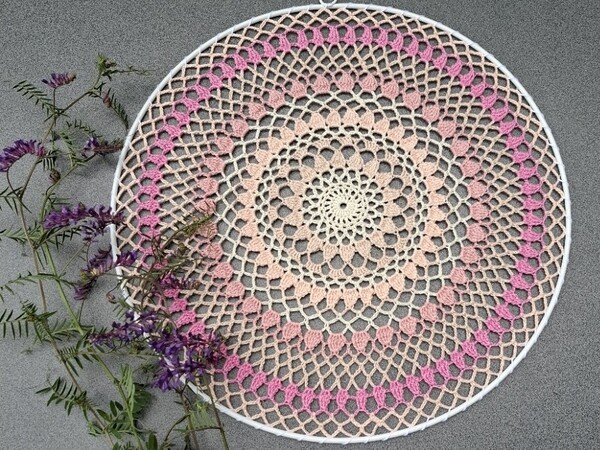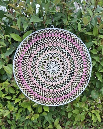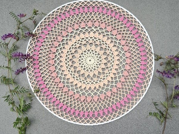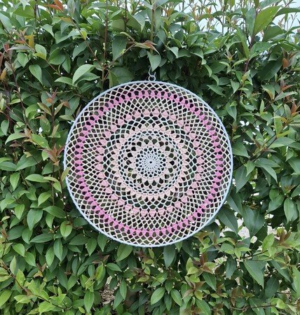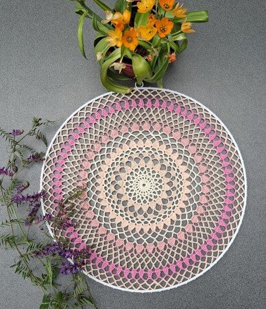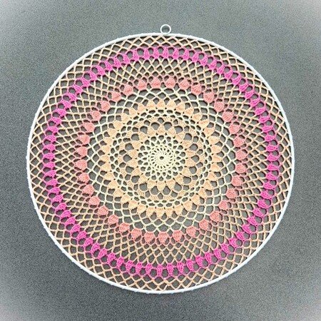 Traumhaftes Mandala mit einem floralem Muster. Diese fernsehtaugliche Häkelarbeit geht leicht von der Hand.