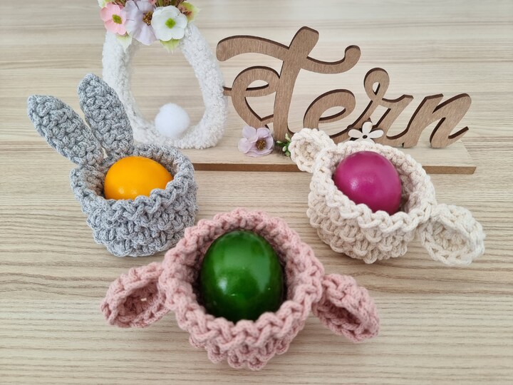 "OsterZoo" Häkelanleitung für Eierbecher mit Schafs- , Affen- und Hasenohren.