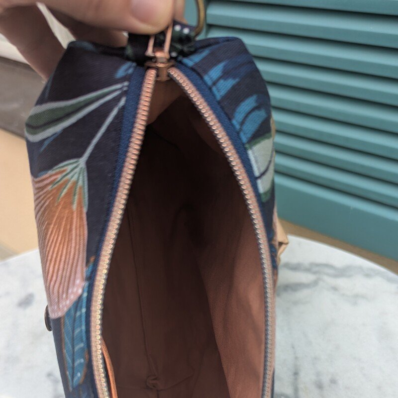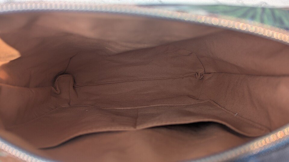 Im Inneren der Tasche befindet sich eine durchdachte Aufteilung: Ein kleines Einsteckfach, das sich ideal für das Smartphone eignet. Ein weiteres kleines Reißverschlussfach ist außerdem möglich.