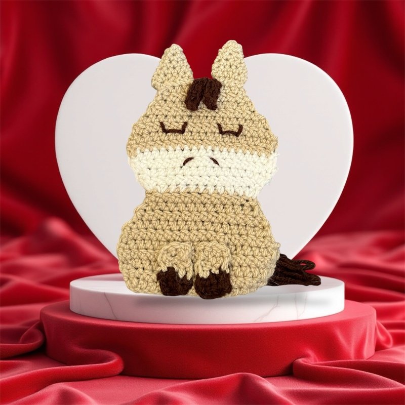 Diese süße Applikation kannst du auf verschiedene Weise einsetzen. Du kannst sie auf Kleidung oder Taschen aufnähen, ebenso aber als Spüllappen nutzen, als Waschlappen oder du kaufst einen passenden Bilderrahmen und gibst dort das Pferd hinzu und hast so ein schönes Geschenk. Alles ist möglich!