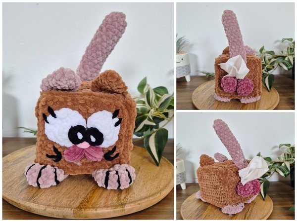 Mit dieser Anleitung lässt sich diese süße und witzige Taschentuchboxhülle in Form eines Katers nach arbeiten.