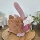 Für den Hauptteil habe ich ca. ¾ Knäul gebraucht. Für Pfoten, Ohren, Schwanz ½ Knäul. Ein kleiner Rest für die Schnauze. Rosa für die Nase. Weiß und Schwarz für die Augen und für Pfoten und Schnurrhaare.