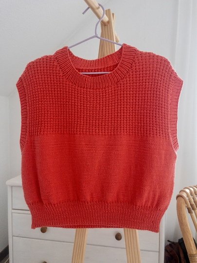 Dann nimmst du alle Maschen zur Runde und strickst bis zur unteren Kante.