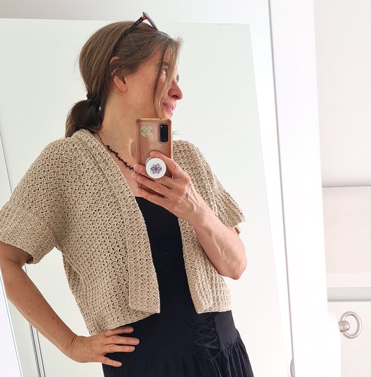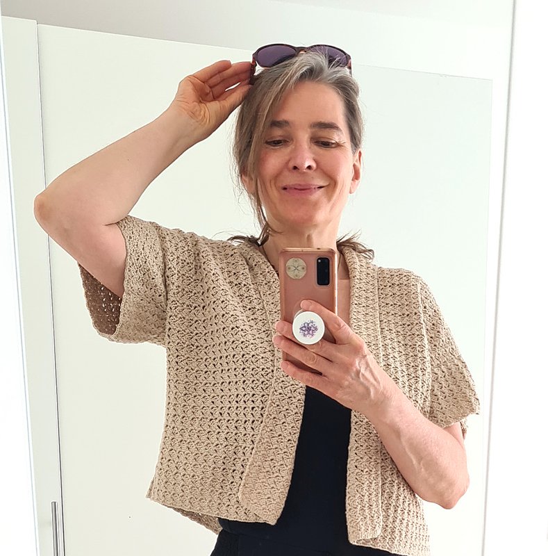 Du kannst die Ärmel natürlich in jeder gewünschten Länge anfertigen, z. B. ein 3/4 oder eine Jacke mit langen Ärmeln daraus zaubern. Ebenso kannst du die Jacke in der Länge an deine Wünsche anpassen.