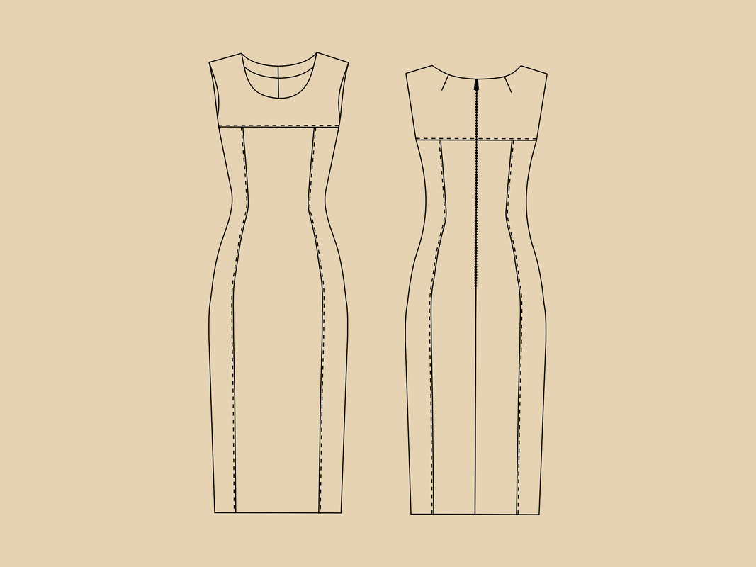 PDF Schnittmuster elegantes Etuikleid in figurbetonter Form