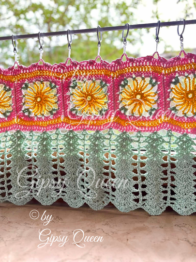 Verleihe deinem Zuhause einen Hauch von Nostalgie und sonniger Lebensfreude – mit dieser liebevoll gestalteten Häkelanleitung für einen charmanten Boho-Vorhang im Granny-Stil! Ob Küche, Bad oder Wohnbereich – dieser Vorhang zaubert durch seine strahlenden Farben und das verspielte Muster echte Wohlfühlatmosphäre in jeden Raum.