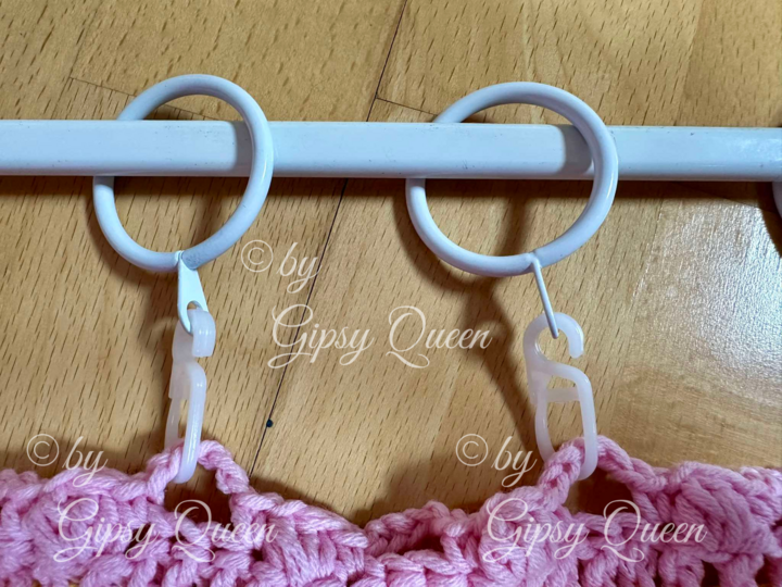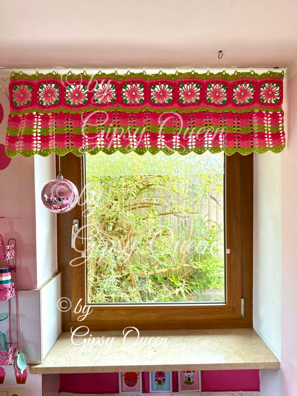 beschrieben ist der Vorhang mit 1,10 m Breite und 35 cm Länge, der Vorhang kann in jeder Größe gehäkelt werden - Beschreibung dazu in der Häkelanleitung