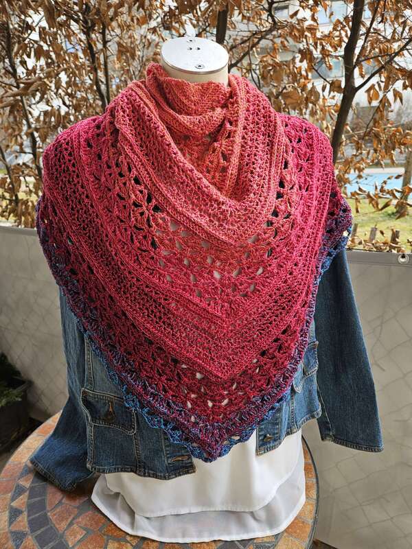 Das Dreieckstuch Mad Clematis wird von der Halskante in Richtung Spitze gehäkelt und ist echter Hingucker, passend für jede Jahreszeit.