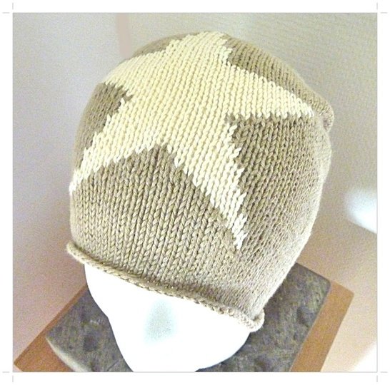 Eine gut verständliche Strickanleitung für eine Baumwollbeanie mit einem eingestricktem Stern.