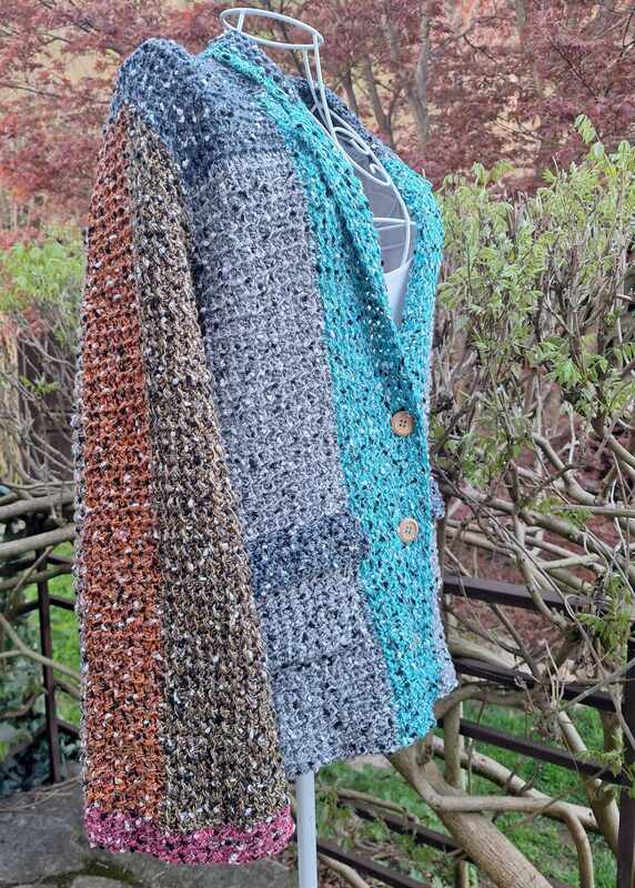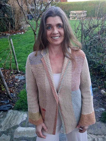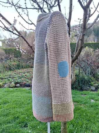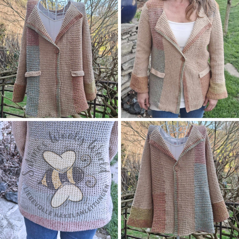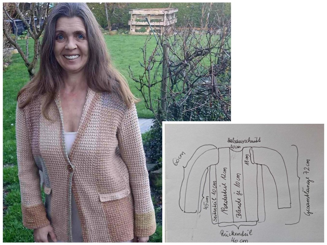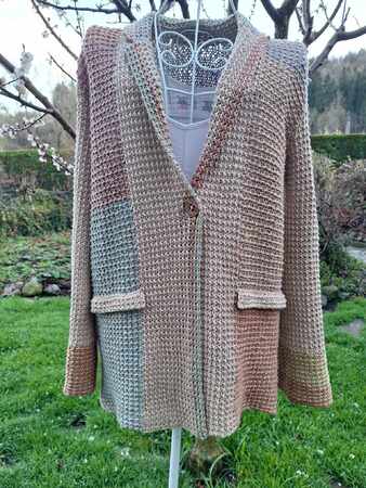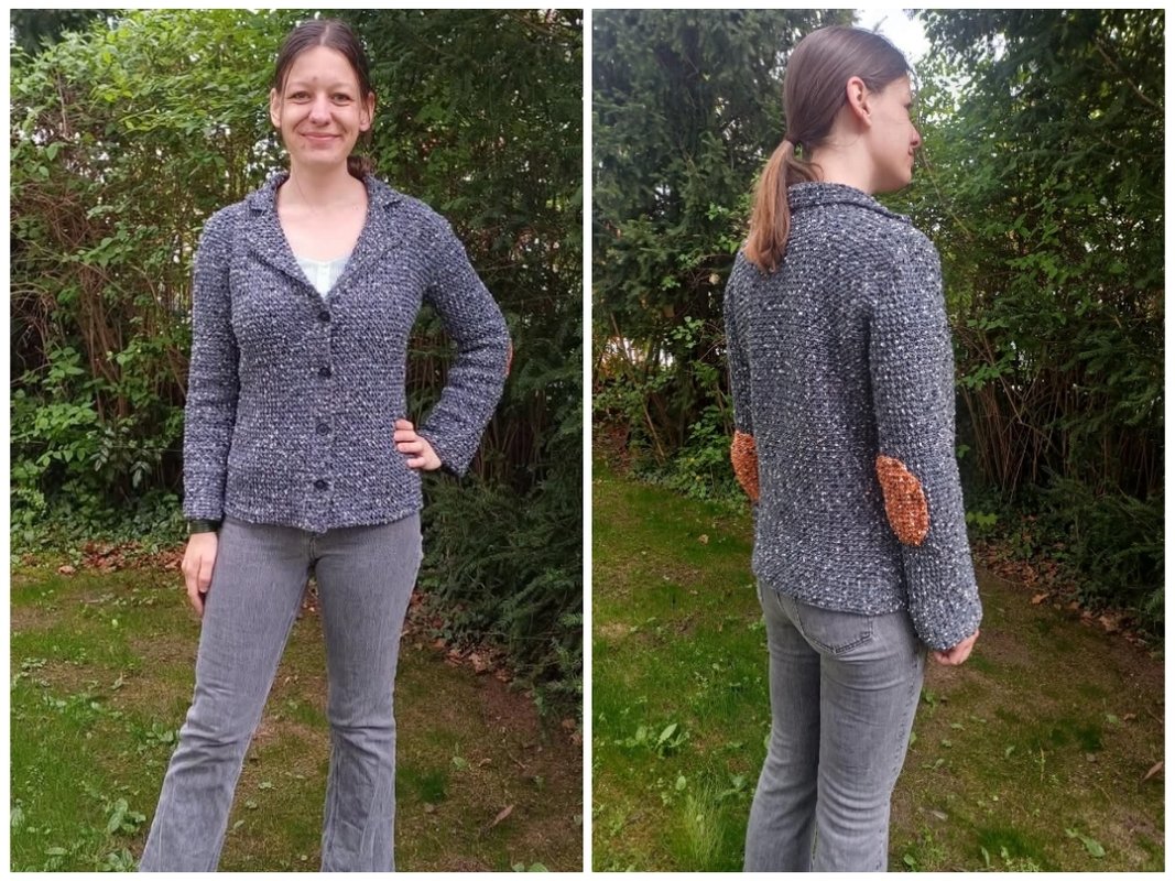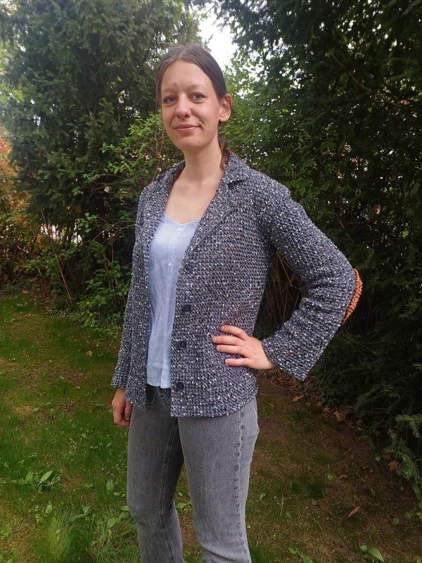 Ob mit Ellbogenflicken oder ohne, mit eingearbeitetenTaschen, aufgesetzten Taschen oder nur Attrappen-Klappen, dieser selbstgehäkelte Blazer besticht durch seine Einzigartigkeit.
