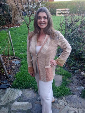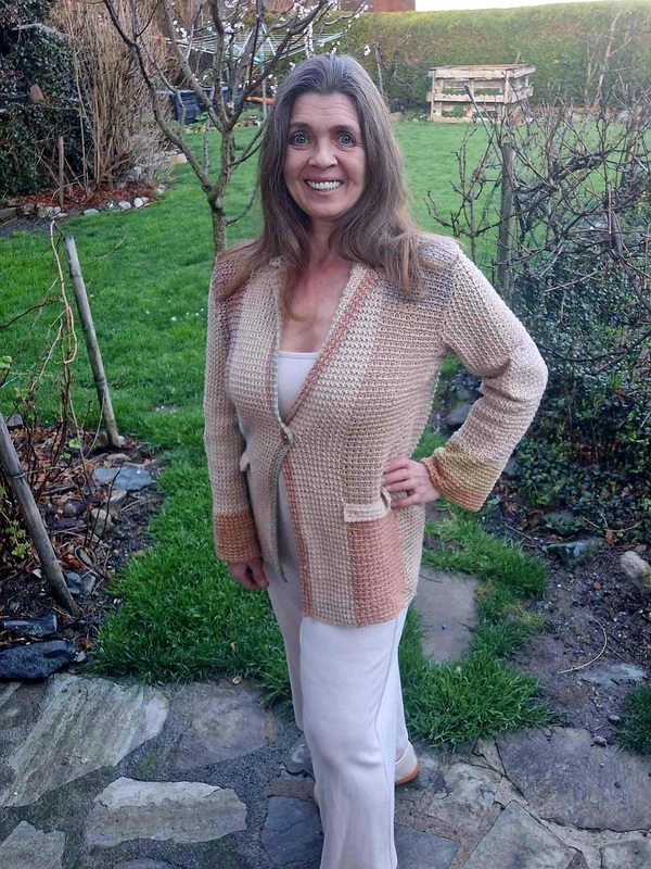 Die Ärmel werden in einer ganz speziell von mir ausgetüftelten Art eingehäkelt, damit eine typische Blazerform entsteht.
