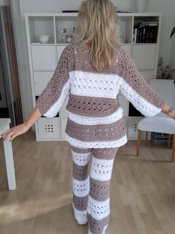 Erhältlich auch komplett als Pantaloni Häkelanzug mit dem Pantonella Häkelpulli.
