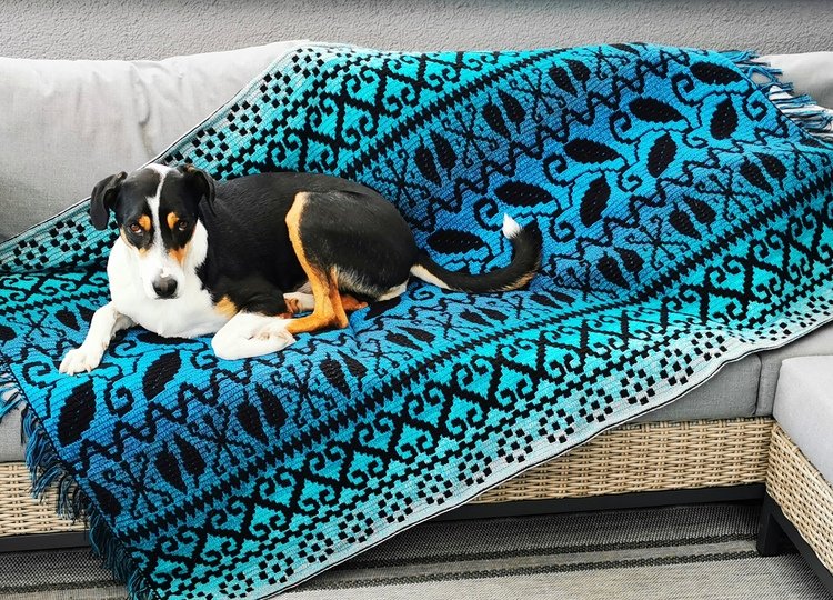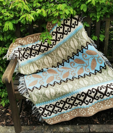 Anleitung für eine Mosaikhäkeldecke in 2 verschiedenen Varianten und einem Tischläufer.