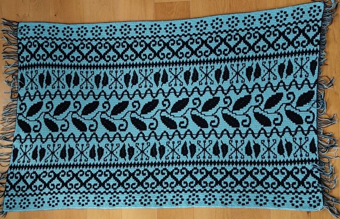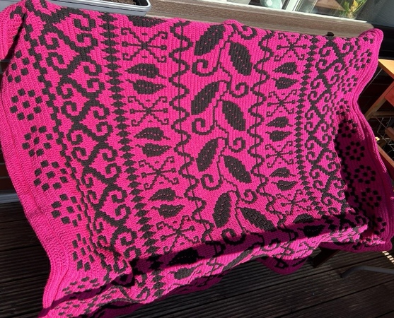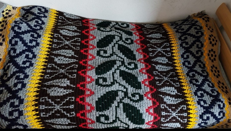 Für die große Decke habe ich 4 fädiges Polyacrylgarn benutzt und eine Häkelnadel Nr. 4.