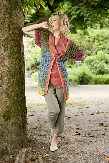 Dieser wunderschöne Cardigan mit Ajourmuster ist die perfekte Kombination aus Eleganz und Leichtigkeit. Das filigrane Lochmuster verleiht dem Cardigan eine luftige Struktur, die ihn ideal für alle Jahreszeiten macht – ob als leichte Schicht im Frühling oder als stilvoller Überwurf an kühleren Tagen. Das Ajourmuster sorgt nicht nur für eine interessante Optik, sondern macht den Cardigan auch angenehm zu tragen. Die Anleitung ist gut verständlich und eignet sich für Strickerinnen mit etwas Erfahrung, die ein einzigartiges, handgefertigtes Kleidungsstück kreieren möchten.