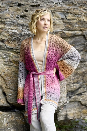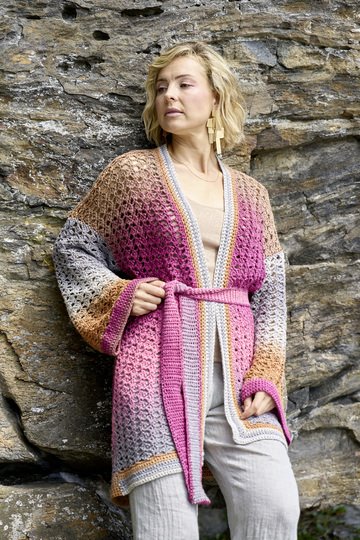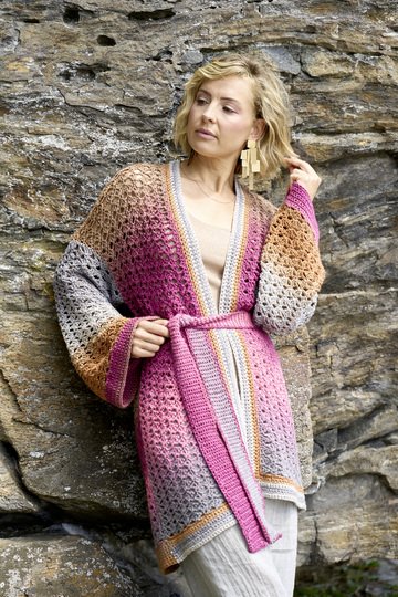 Diese elegante Kimonojacke kombiniert Komfort und Stil in einem zeitlosen Design. Mit ihrem entspannten Schnitt und den weiten Ärmeln ist sie besonders angenehm zu tragen und verleiht jedem Outfit ein Hauch asiatischen Flairs. Die offene Vorderseite ermöglicht ein lässiges Styling und macht die Jacke zu einem vielseitigen Begleiter – perfekt über Tops, Blusen oder Kleidern. Ob leichtes Garn für den Sommer oder wärmeres Material für die kühlen Monate, die Kimonojacke passt sich jeder Jahreszeit an. Die Strickanleitung ist leicht verständlich und sowohl für Anfänger als auch für Fortgeschrittene ideal geeignet. Kreieren Sie Ihr individuelles Lieblingsstück und genießen Sie die Kombination aus Komfort und Stil!