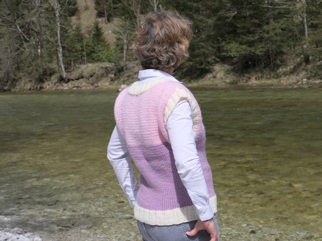 Der Pullunder kann leicht an andere Garne angepasst werden.