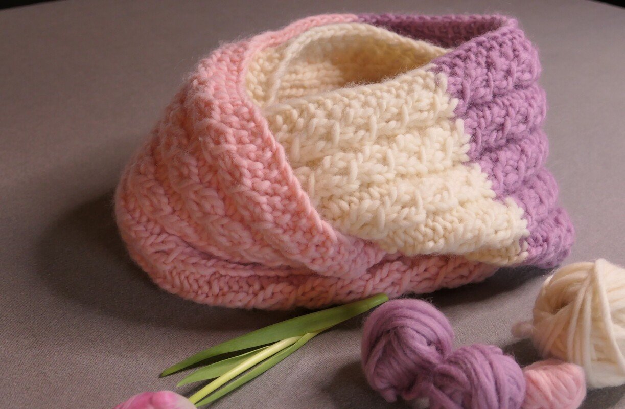 Ich habe für den Loopschal mit der Wolle Molly fine für Nadelstärke 7 von Hobbii gestrickt.