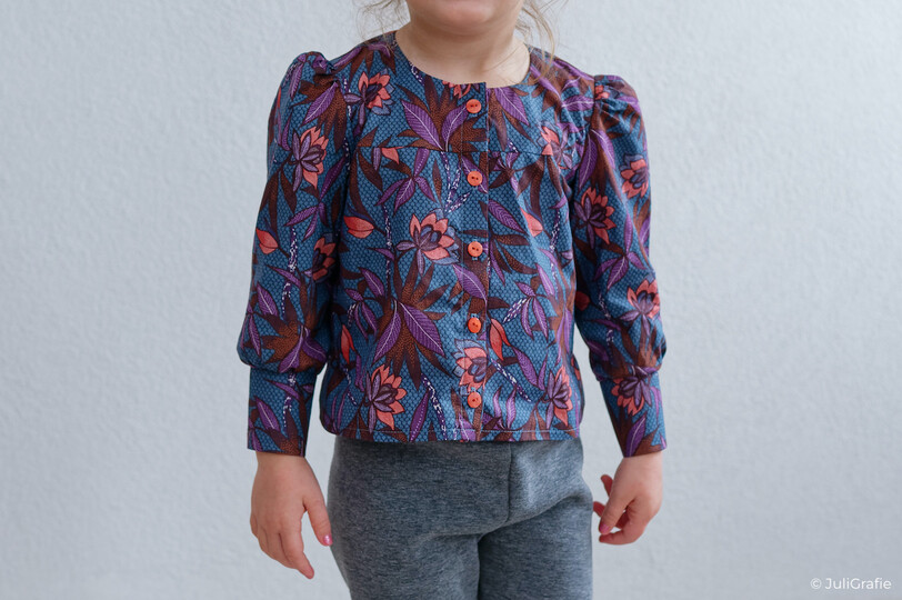 Die „Bluse Radium“ ist eine digitale Nähanleitung mit Schnittmuster für eine Bluse aus leichter Webware für Kinder und umfasst die Größen 116-140.