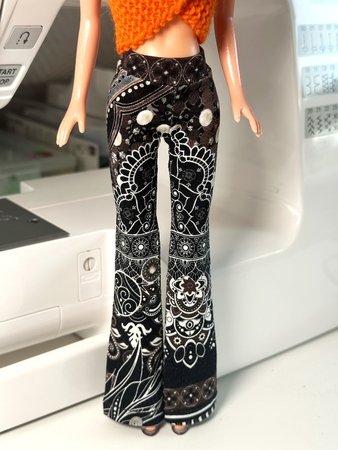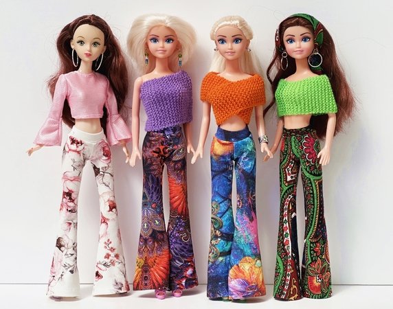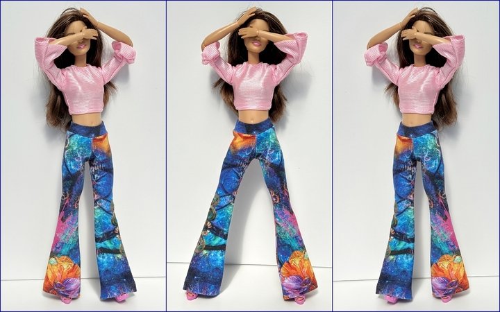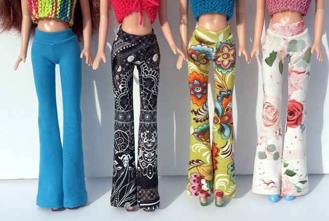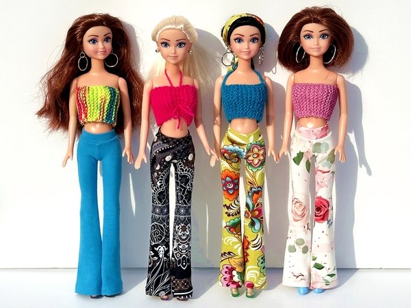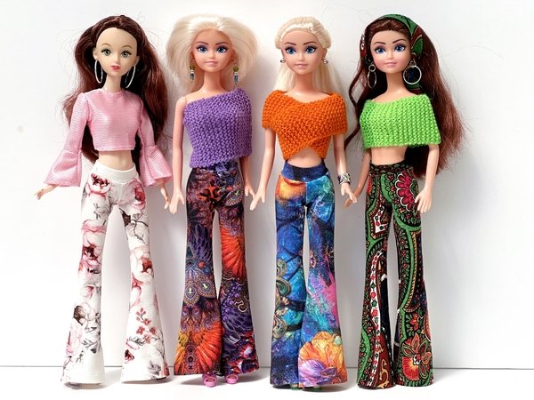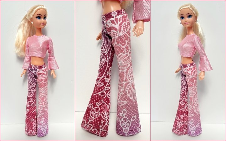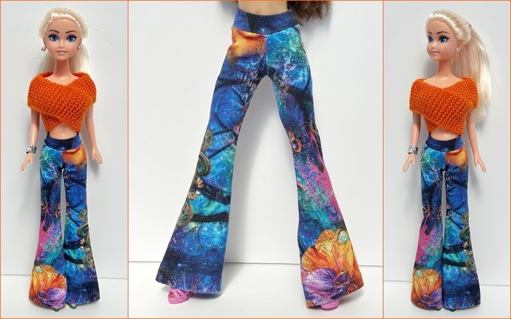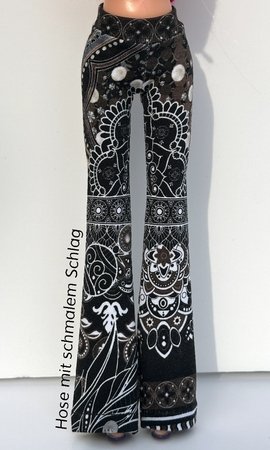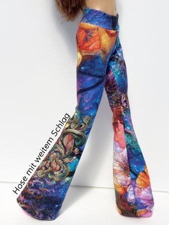 Ihr könnt die Hose mit weitem oder schmalem Schlag nähen. Schaut Euch gern die Fotos in meiner Bildergalerie an und lasst Euch von der Lust aufs Selbermachen von Puppenkleidung anstecken.