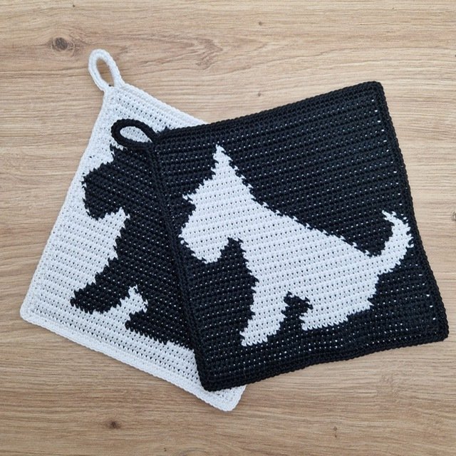 Diese Topflappen sind der Klassiker unter den gehäkelten Topflappen. Sie schützen die Hände nicht nur vor z.B. zu heißen Topfgriffen, sondern sie verschönern auch jede Küche. Gleichzeitig können sie auch als Untersetzer verwendet werden.
