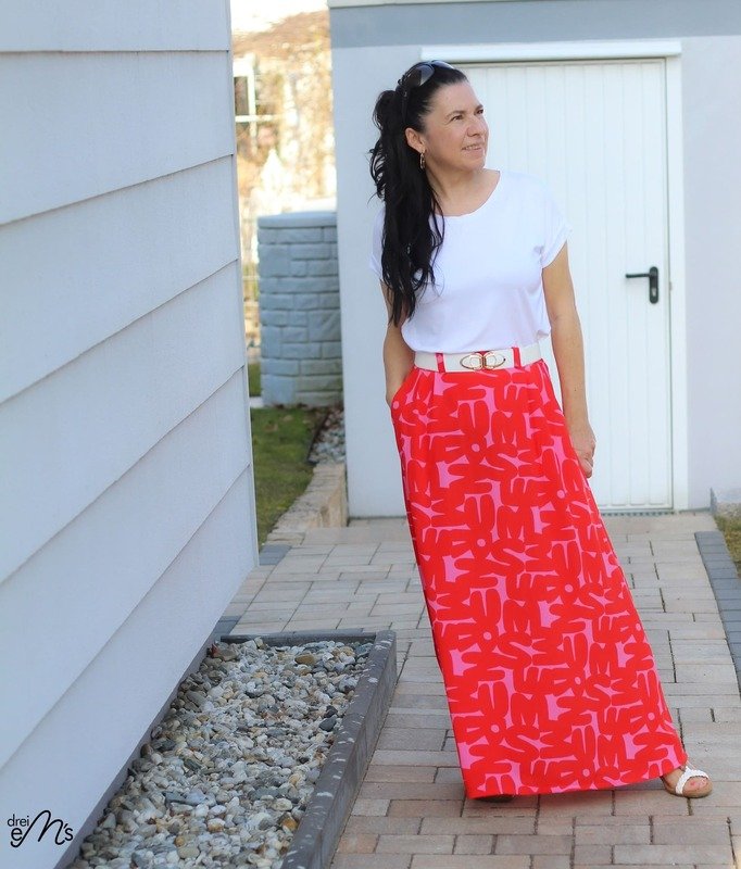 Du hast außerdem die Möglichkeit, einen Seitenschlitz einzuarbeiten. Diese Variante empfehle ich dir jedoch ausschließlich bei der Maxi-Version, da sie dem Rock dort nicht nur mehr Bewegungsfreiheit, sondern auch einen besonders raffinierten Look verleiht. Wie du den Schlitz einnähst, erkläre ich dir natürlich ausführlich in der Anleitung.