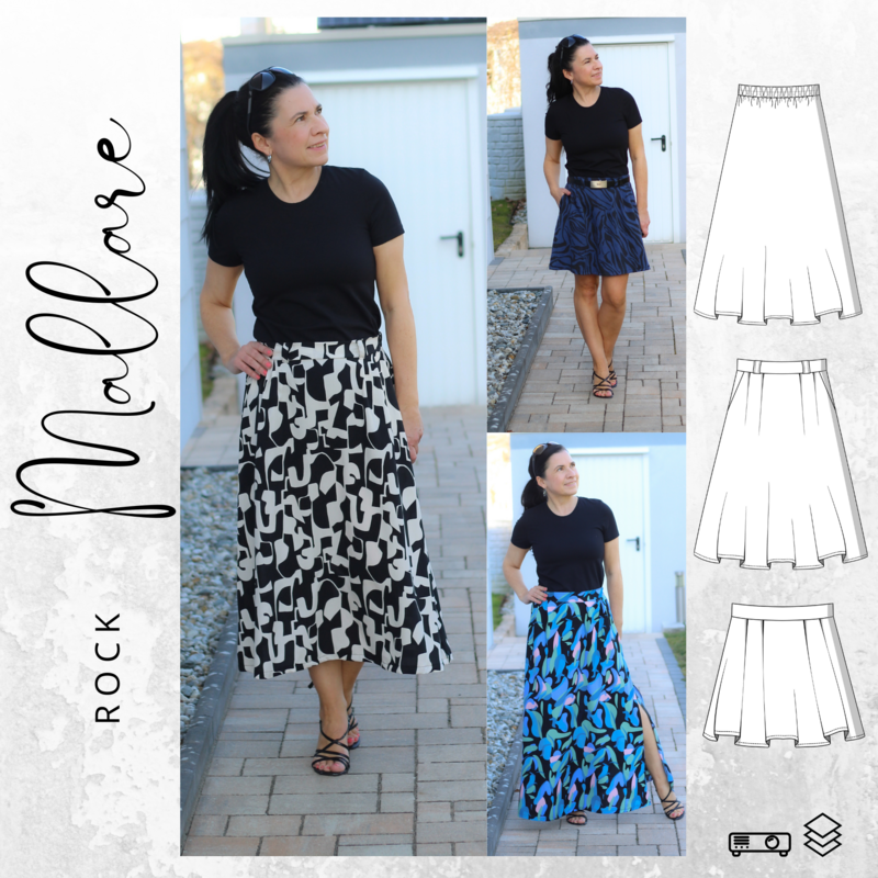Durch die Auswahl an hochwertigen Stoffen ist der Rock MALLARE sowohl für elegante Anlässe als auch für den täglichen Gebrauch bestens geeignet. Fließende Materialien wie Viskose-Webware, Viskose-Crepe, Leinen oder Chiffon sorgen für einen luftigen, femininen Look. Aber auch Musselin eignet sich hervorragend für ein leichtes, aber dennoch schickes Outfit.