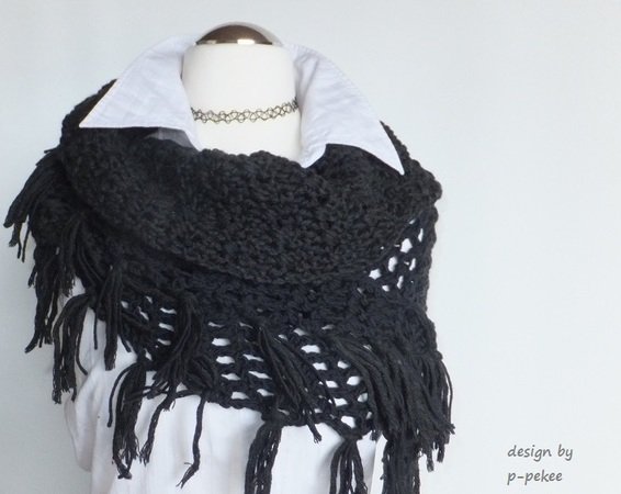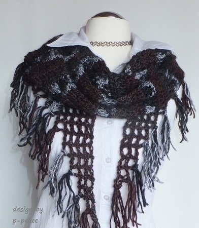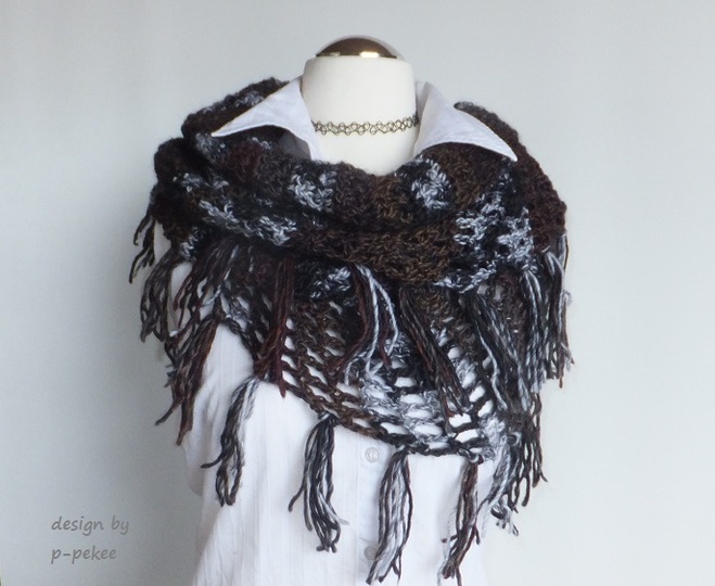 Der Schal hat sehr viele Tragemöglichkeiten. Die Fransen sind ein optisches Highlight - derzeit der neue Modetrend!