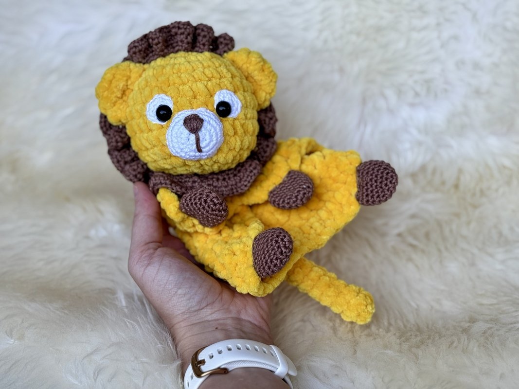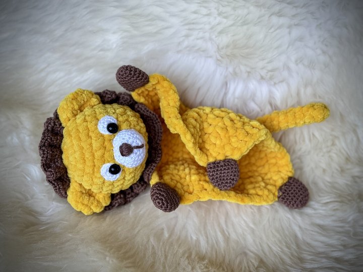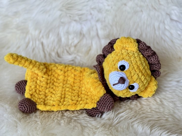 Mit dieser detaillierten Häkelanleitung zauberst du ein weiches, kuscheliges Schnuffeltuch in Form eines kleinen Löwen.