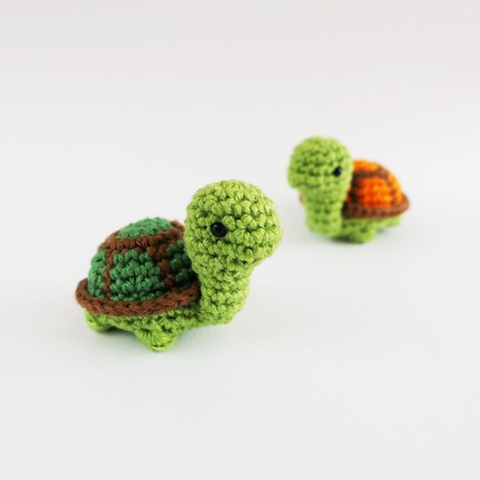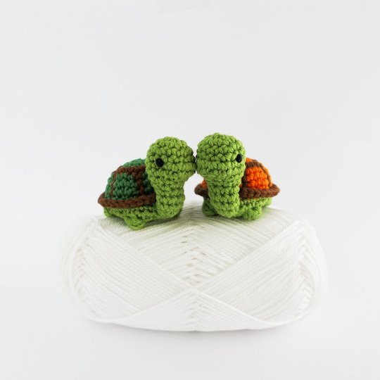 Mit dem angegebenen Material wird die MINI SCHILDKRÖTE ca. 5 cm lang. Wenn du sie grösser/kleiner möchtest, verwende dickeres/dünneres Garn mit passender Häkelnadel.
